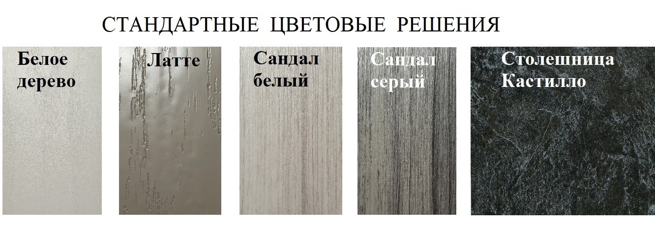 - Фасады стандартных цветов (входят в стоимость ): Белое дерево, Латте, Сандал белый, Сандал серй