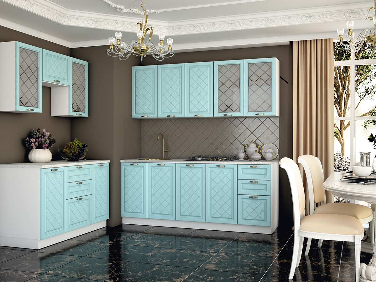 Модульная кухня Модена/Айвори МДФ Бирюза