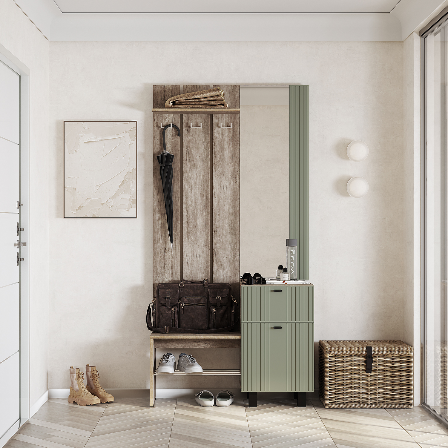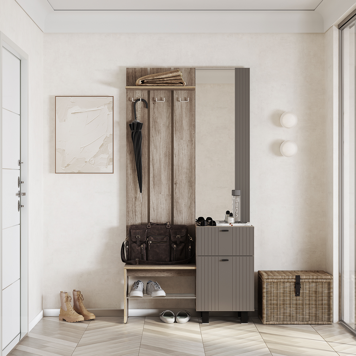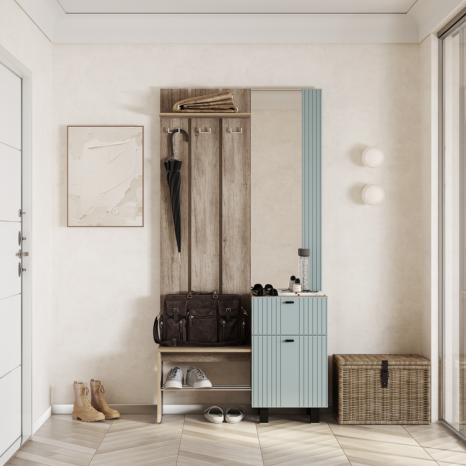 Малогабаритная прихожая из современных качественных материалов и комплектующих, которая легко поместится даже в узкий коридор. Такаая прихожая удобна для небольших помещений, квартир-студий, холла на даче или в загородном доме.