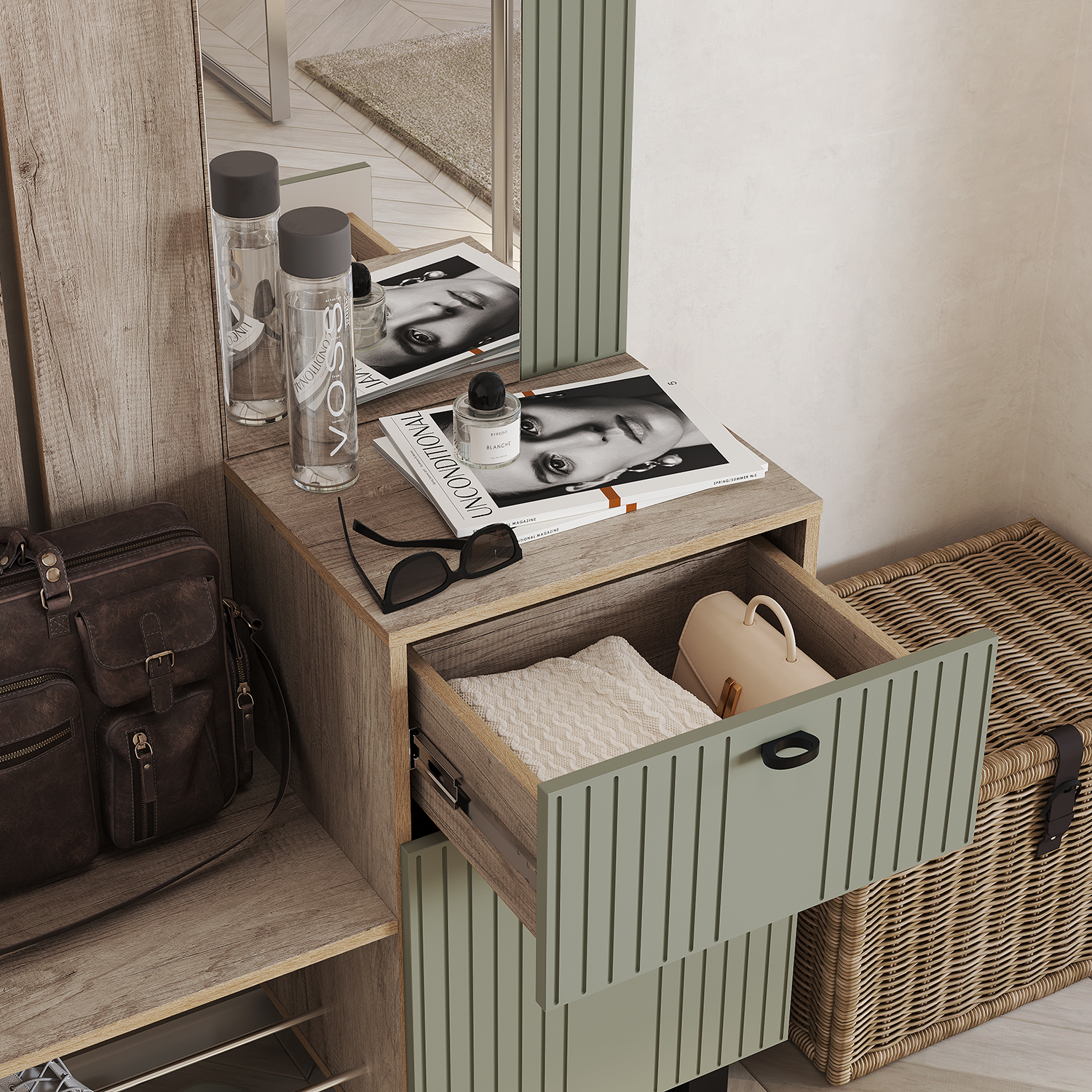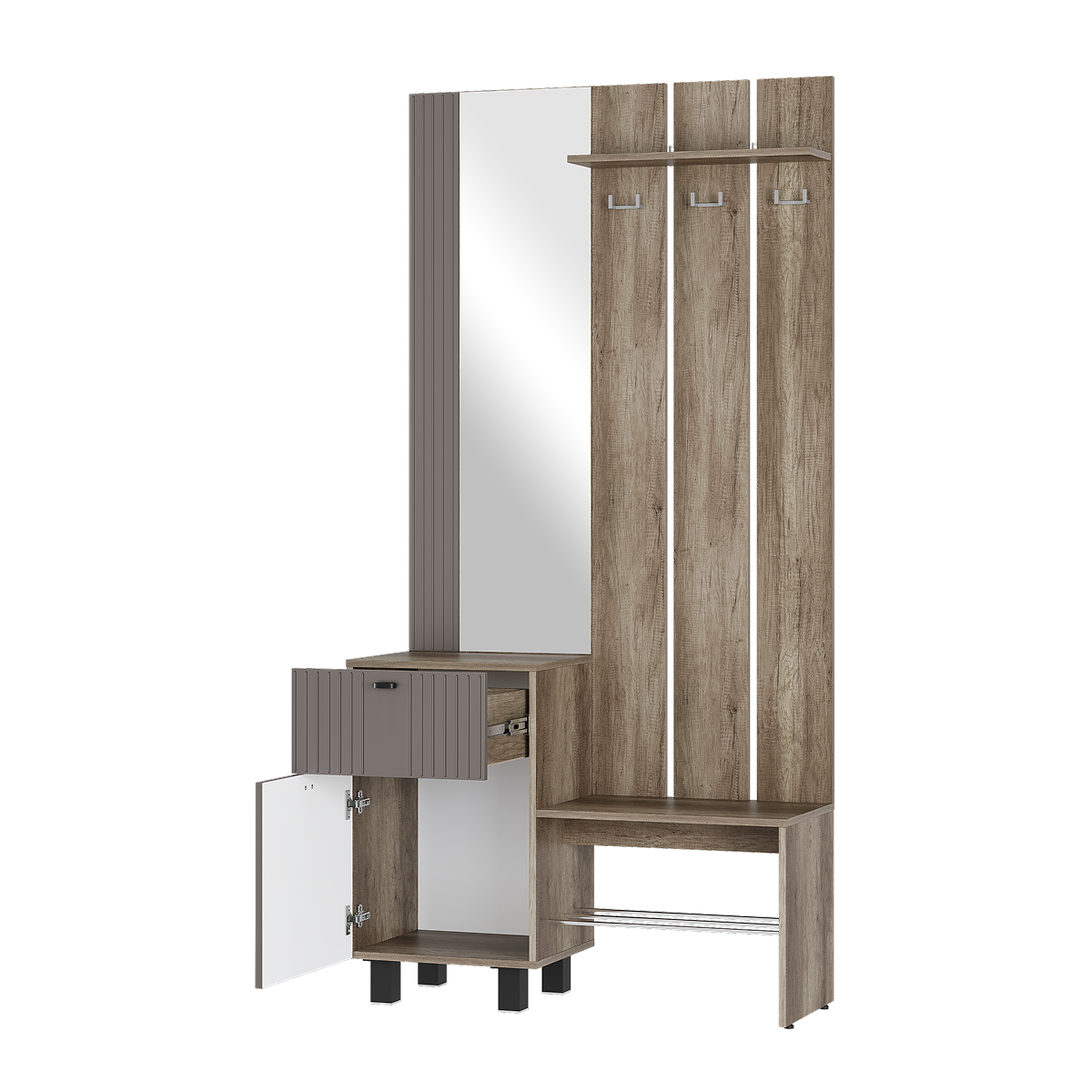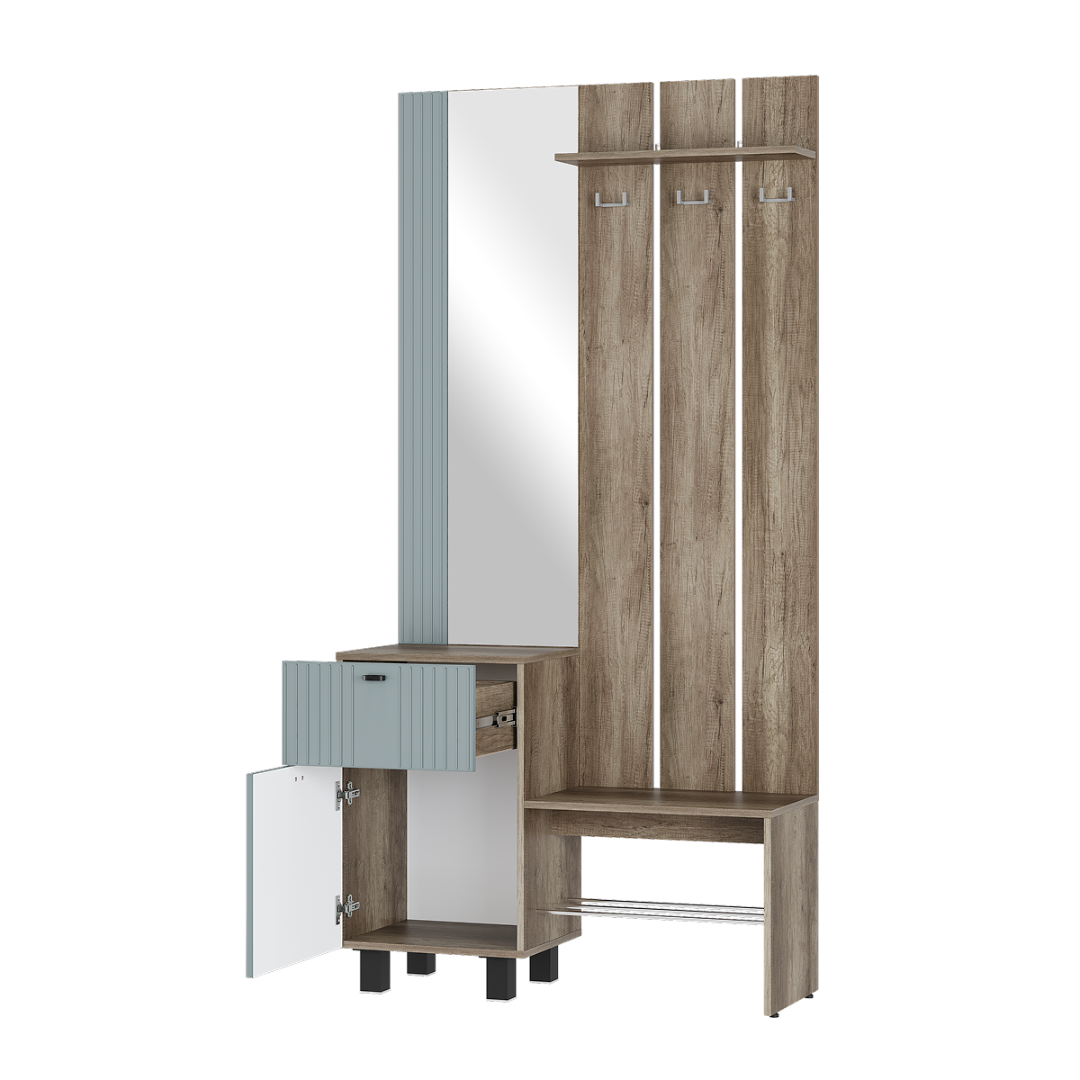 Малогабаритная прихожая из современных качественных материалов и комплектующих, которая легко поместится даже в узкий коридор. Такаая прихожая удобна для небольших помещений, квартир-студий, холла на даче или в загородном доме.