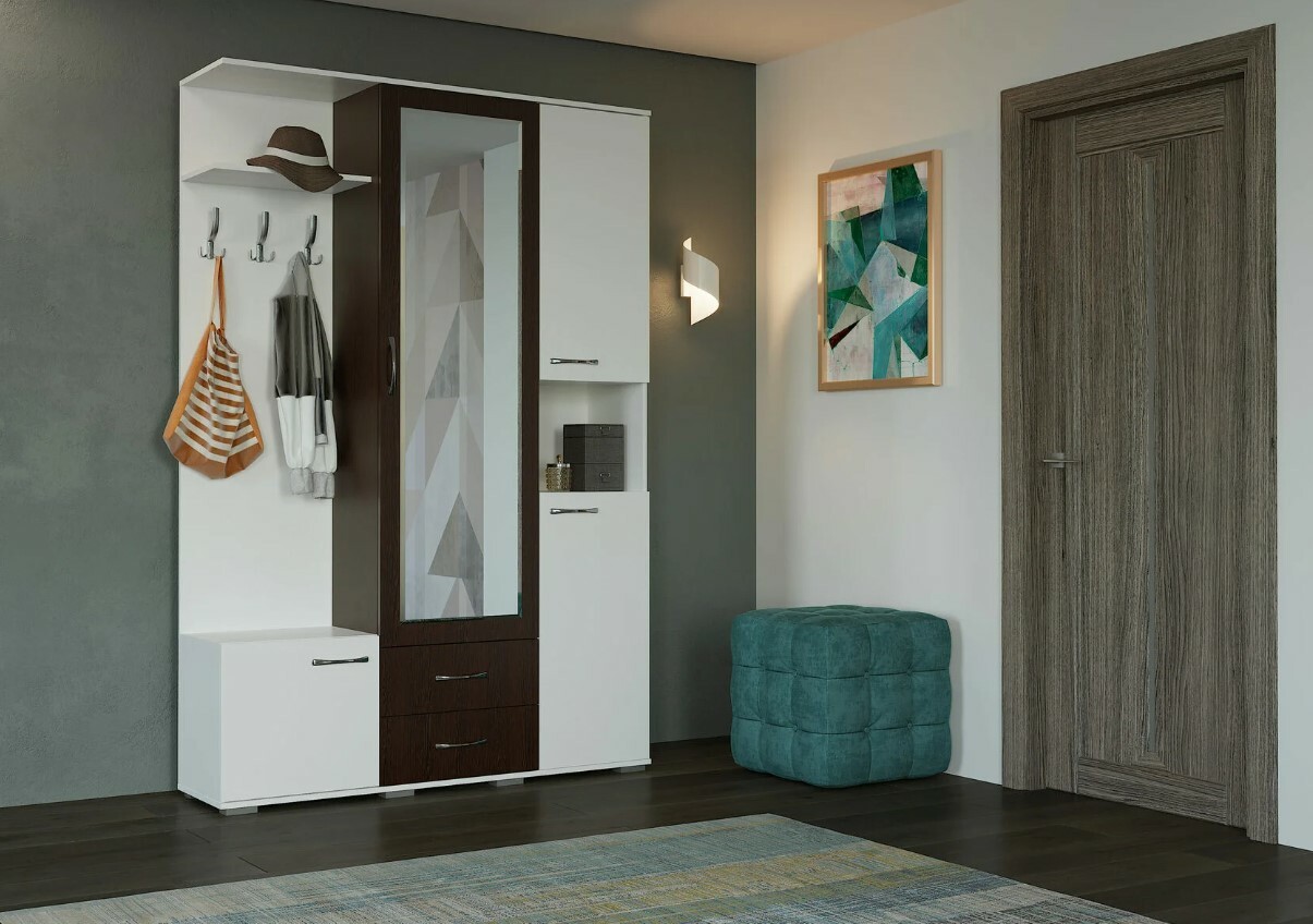 Малогабаритная прихожая из современных качественных материалов и комплектующих, которая легко поместится даже в узкий коридор.