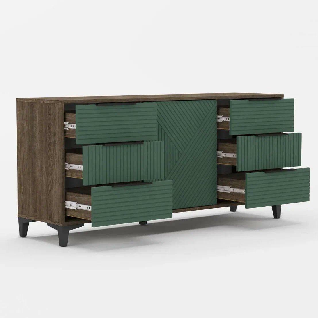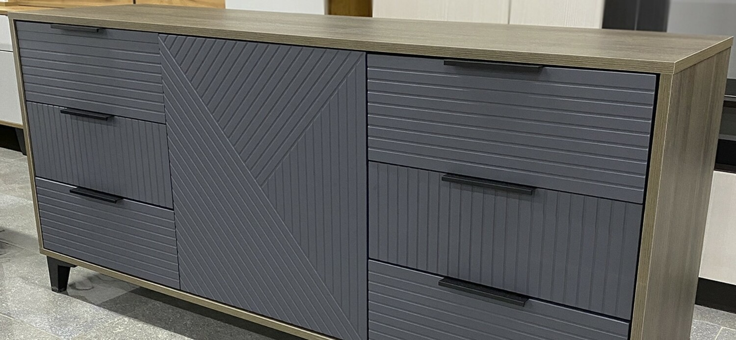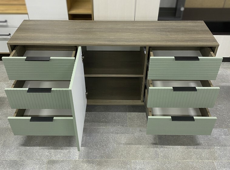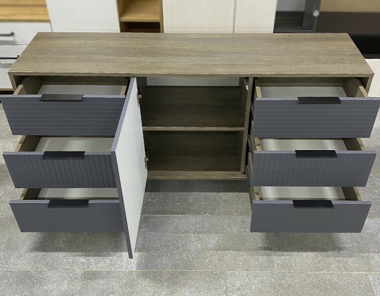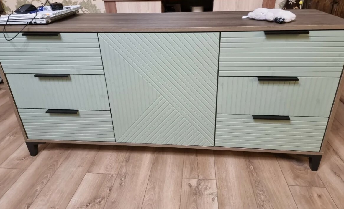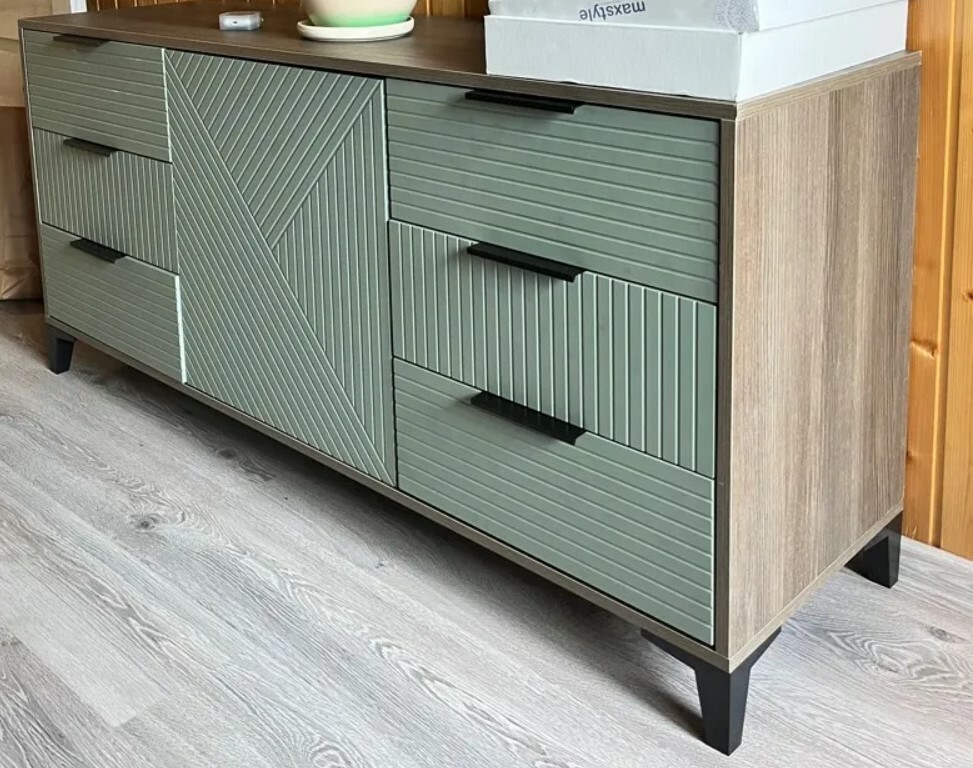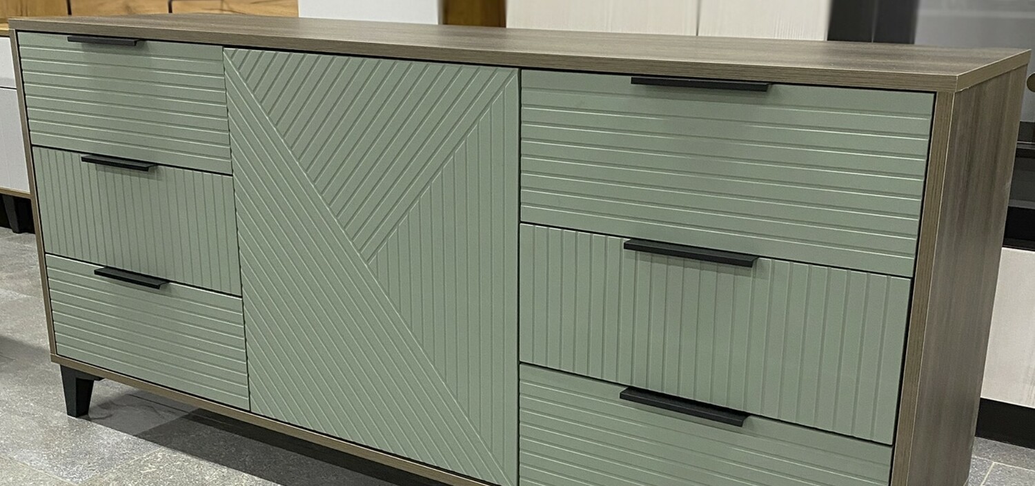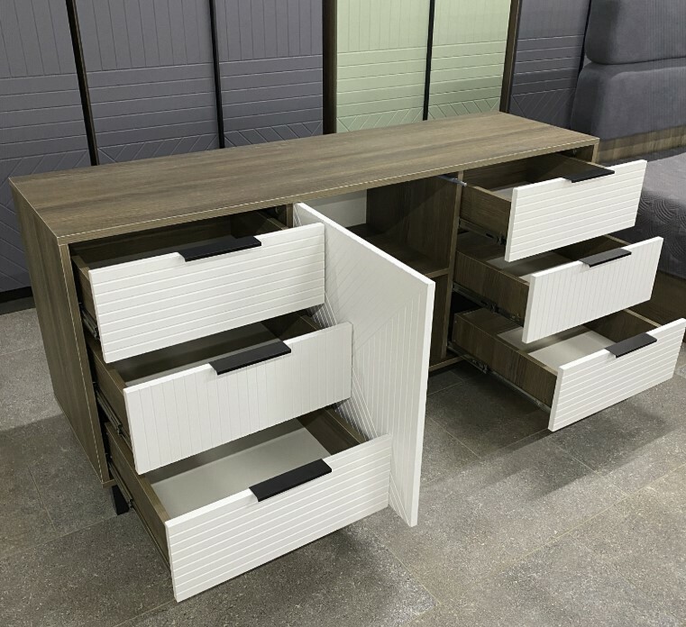 🟢Комод Палау:  6 выдвижных ящиков с шариковыми направляющими полного выдвижения,1 распашная дверца (открывается нажатием на   фасад с помощью механизма "push to open"), пластиковые ножки.
