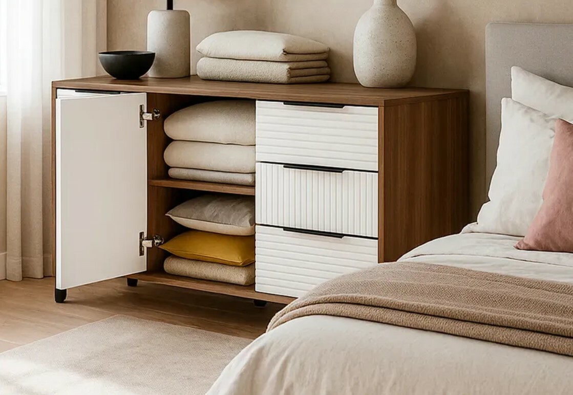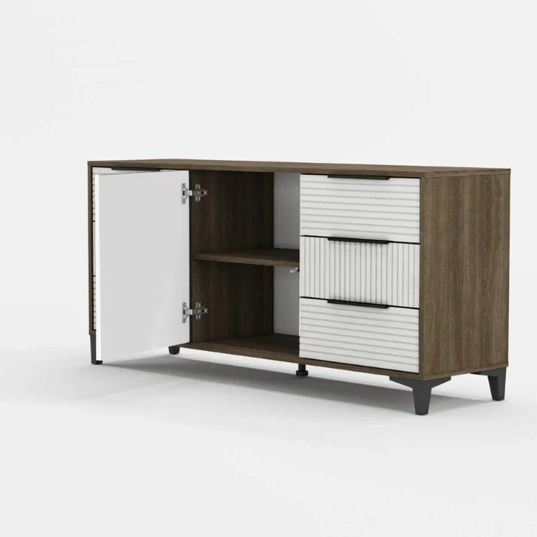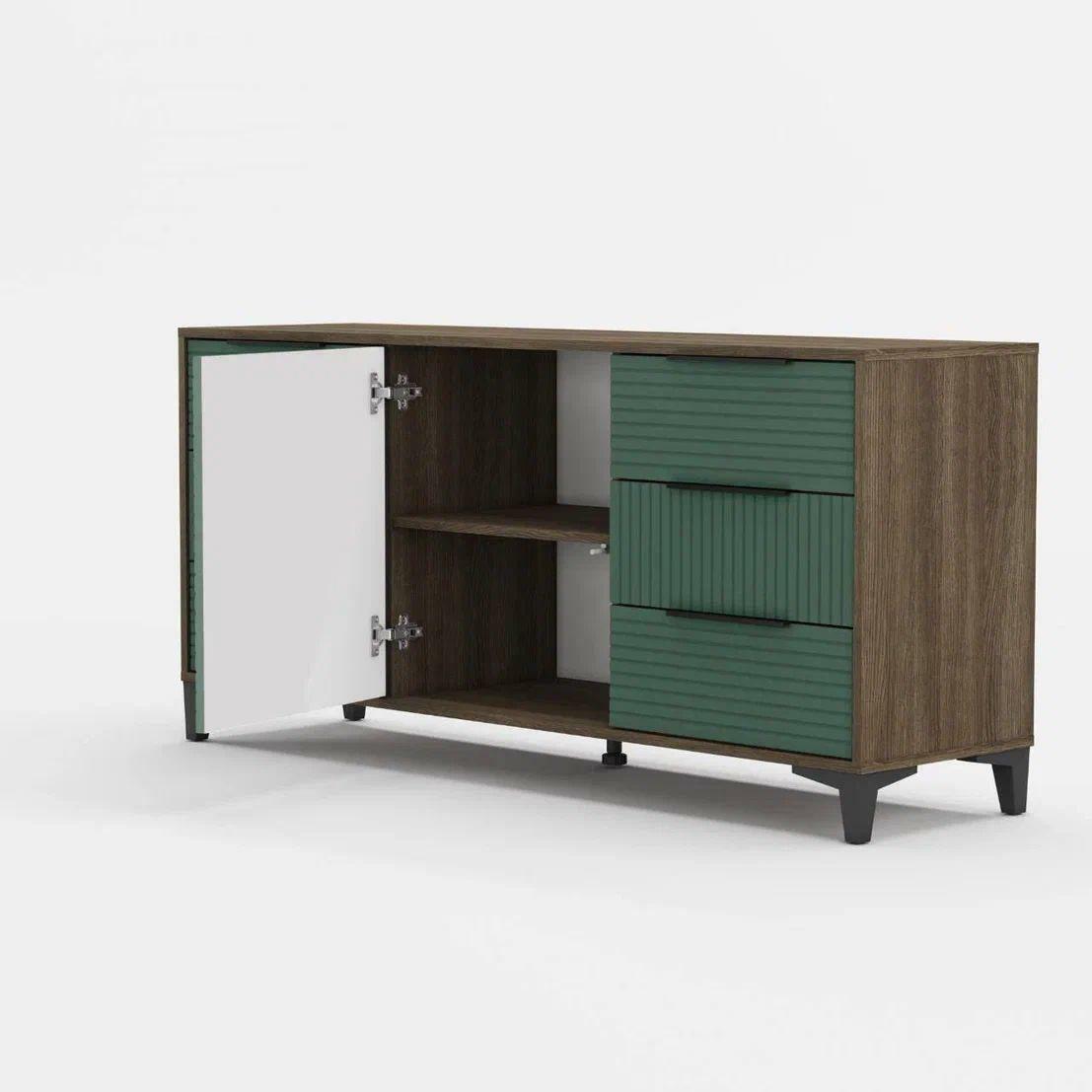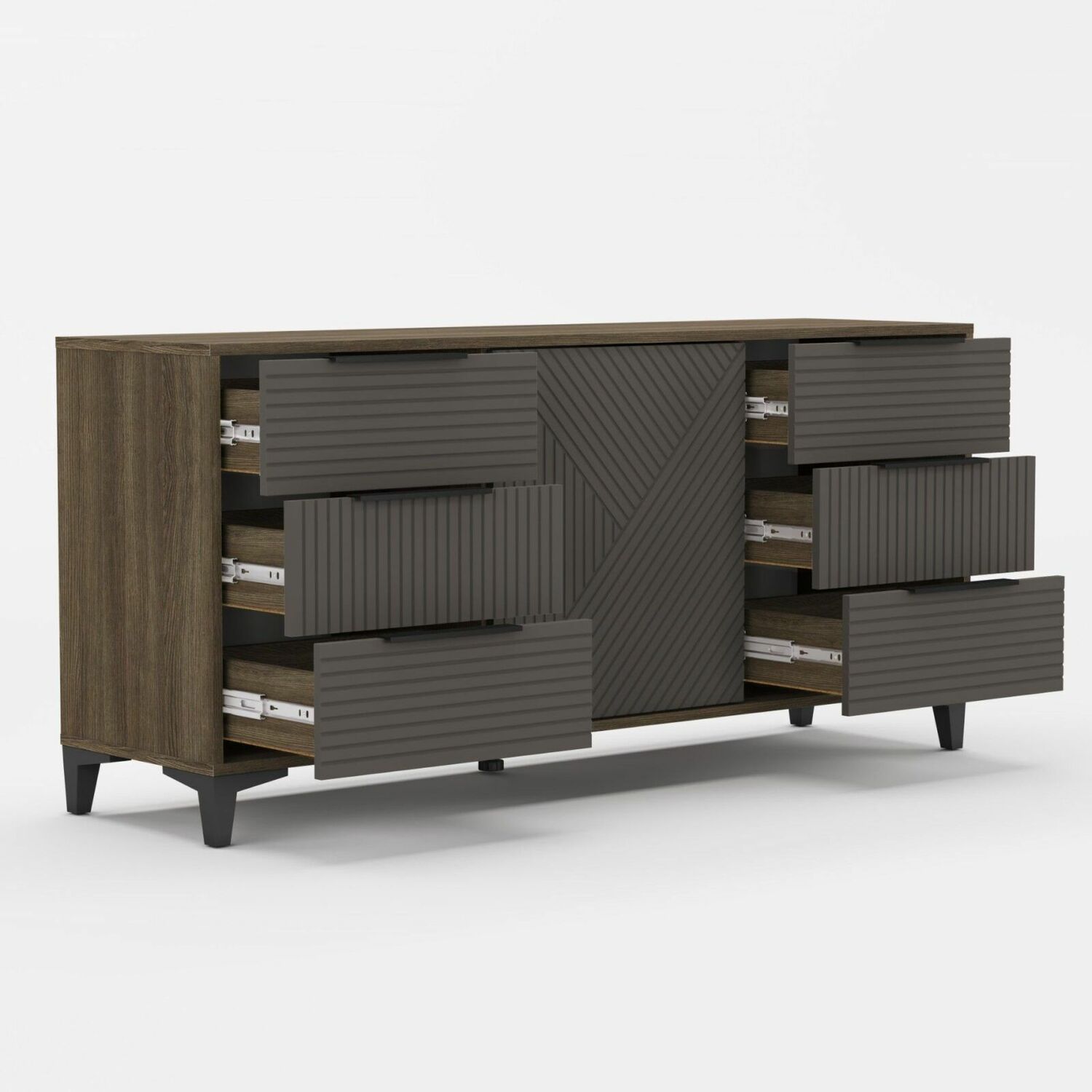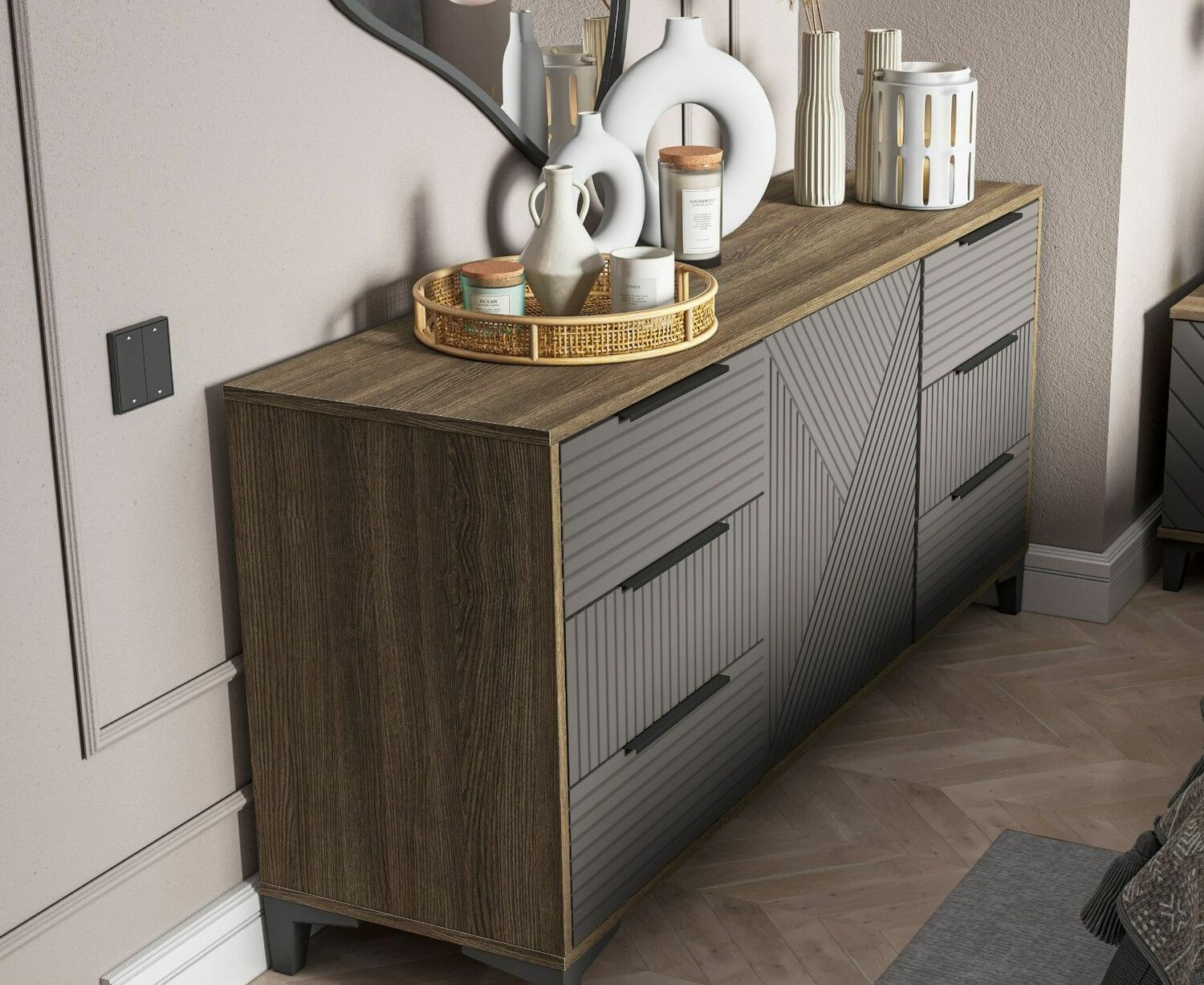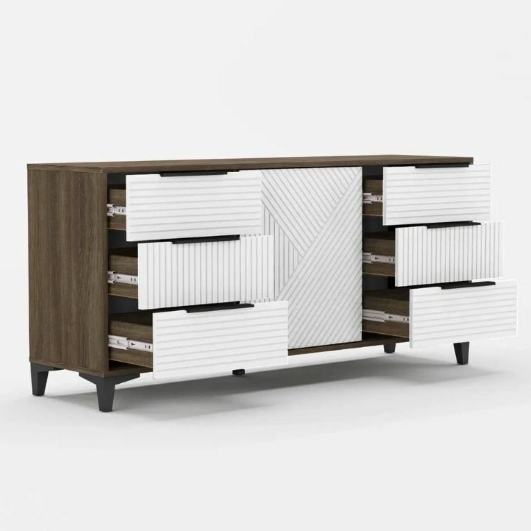 🟢Комод Палау:  6 выдвижных ящиков с шариковыми направляющими полного выдвижения,1 распашная дверца (открывается нажатием на   фасад с помощью механизма "push to open"), пластиковые ножки.
