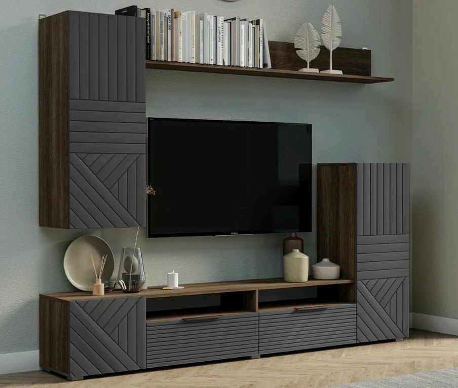 Шкаф Палау распашной 4-ств. (ШхВхГ: 1802х2100х500мм) МДФ Грей софт/ЛДСП Табак