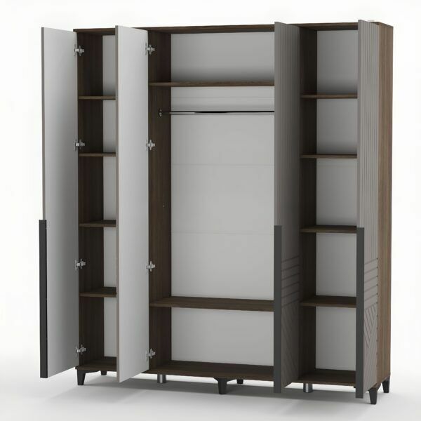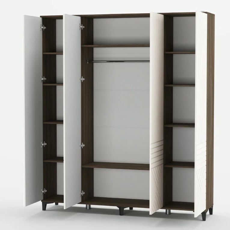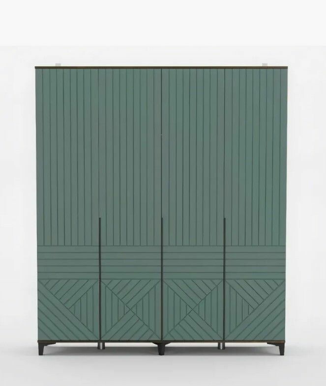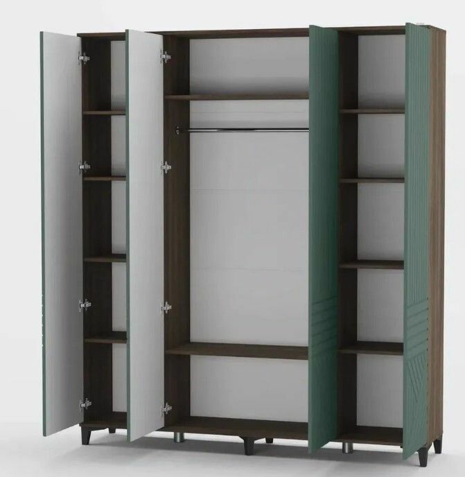 🟢Шкаф распашной 4-створчатый Палау: полки для белья, отделение со штангой, 3  длинные ручки, петли с доводчиком, пластиковые ножки.