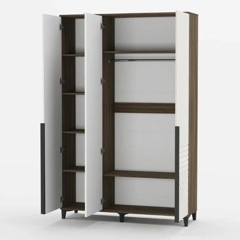 Шкаф Палау распашной 3-ств. (ШхВхГ: 1352х2100х500мм) МДФ Белый софт/ЛДСП Табак