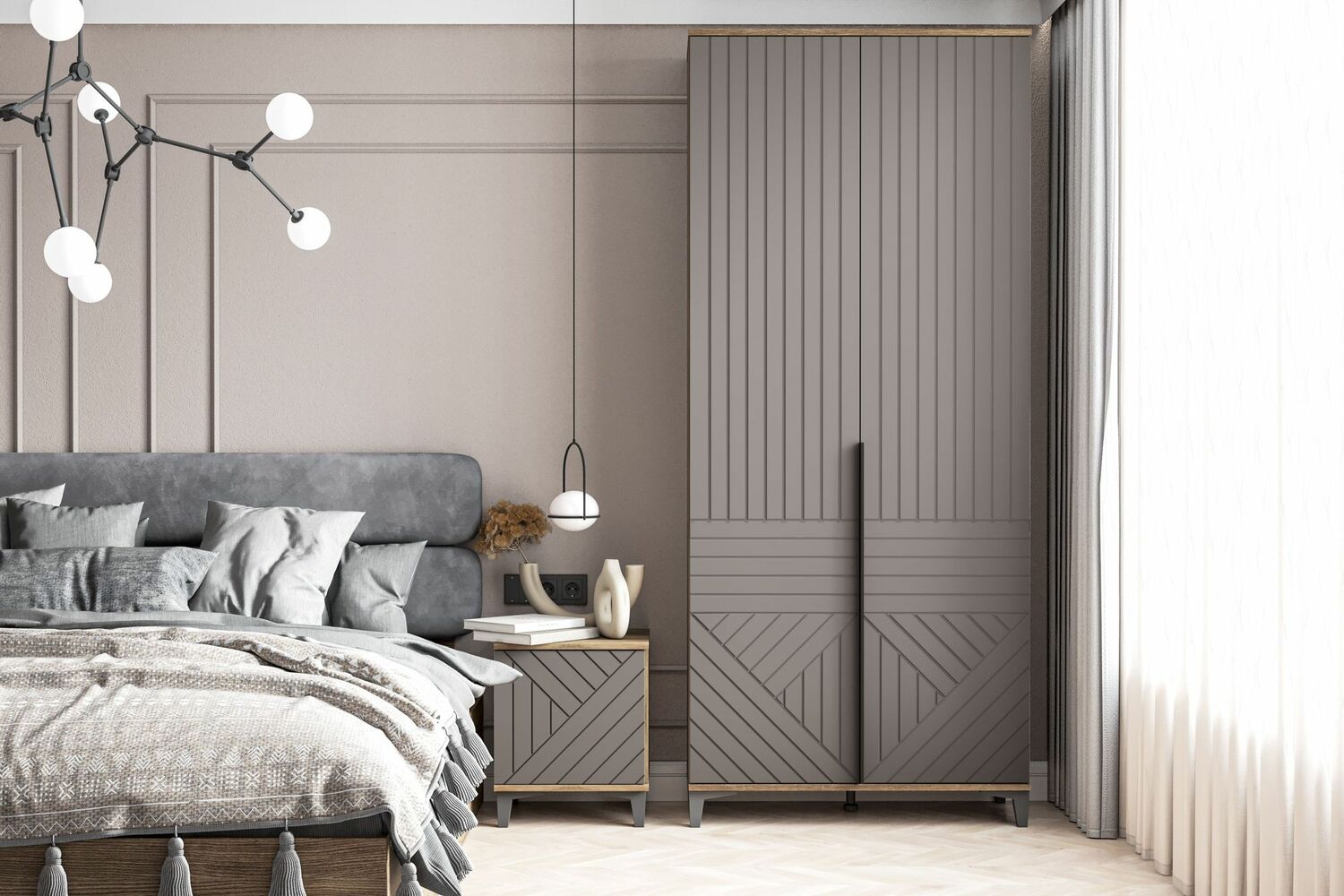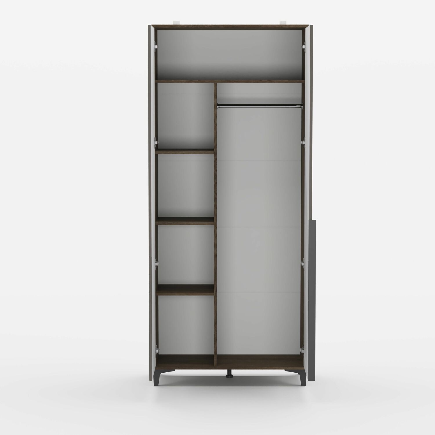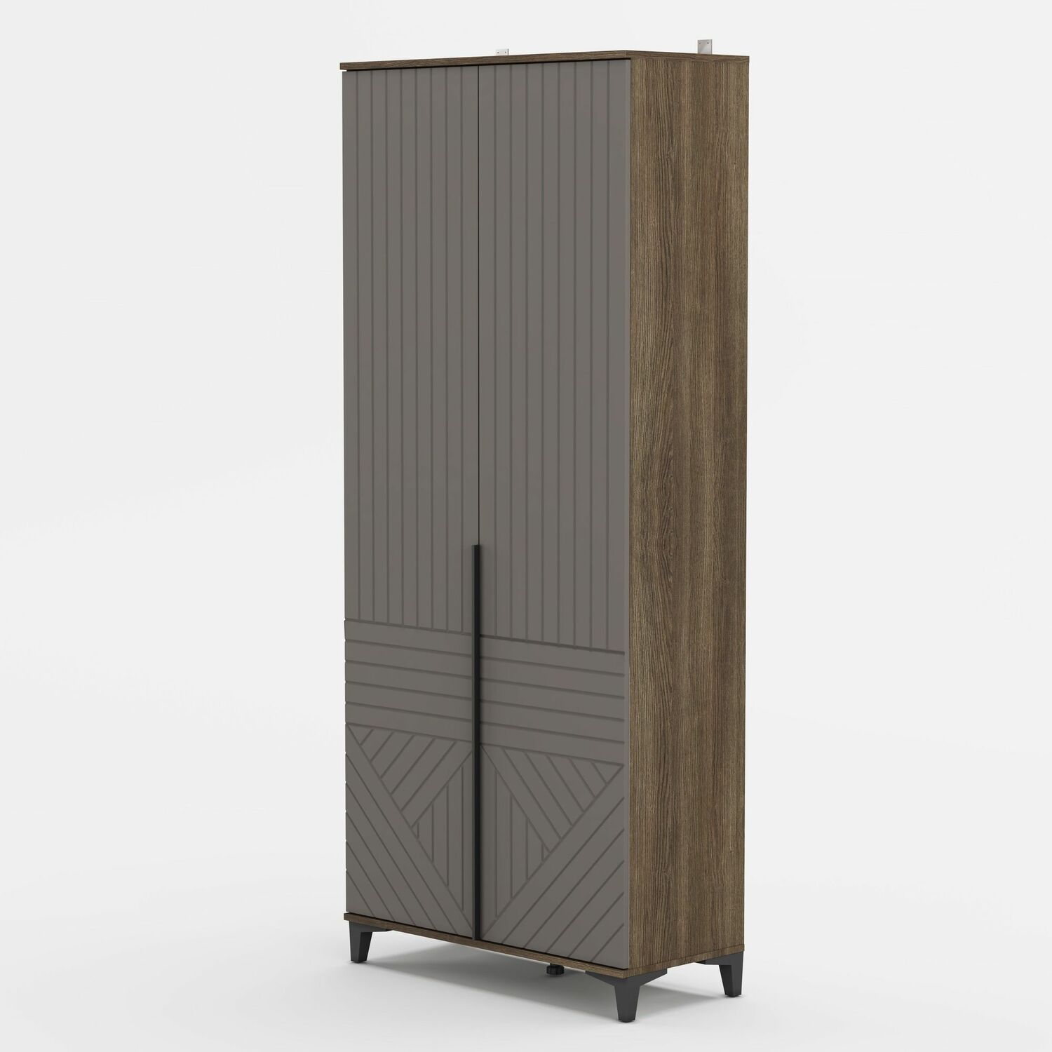 Шкаф Палау распашной 2-ств.  (ШхВхГ: 900х2100х500мм) МДФ Грей софт/ЛДСП Табак