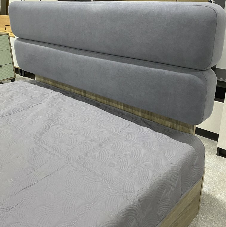 🟢Кровать   Палау с мягким изголовьем: мягкое изголовьем из велюровой ткани серого цвета,  основание под матрас- листы ДСП, юез матраса.