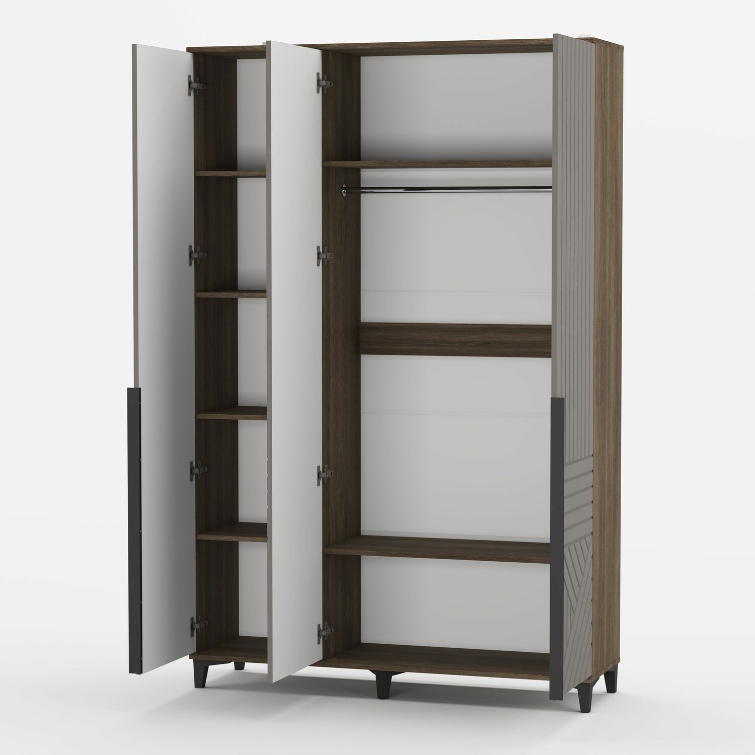 Шкаф Палау распашной 3-ств.  (ШхВхГ: 1352х2100х500мм) МДФ Грей софт/ЛДСП Табак