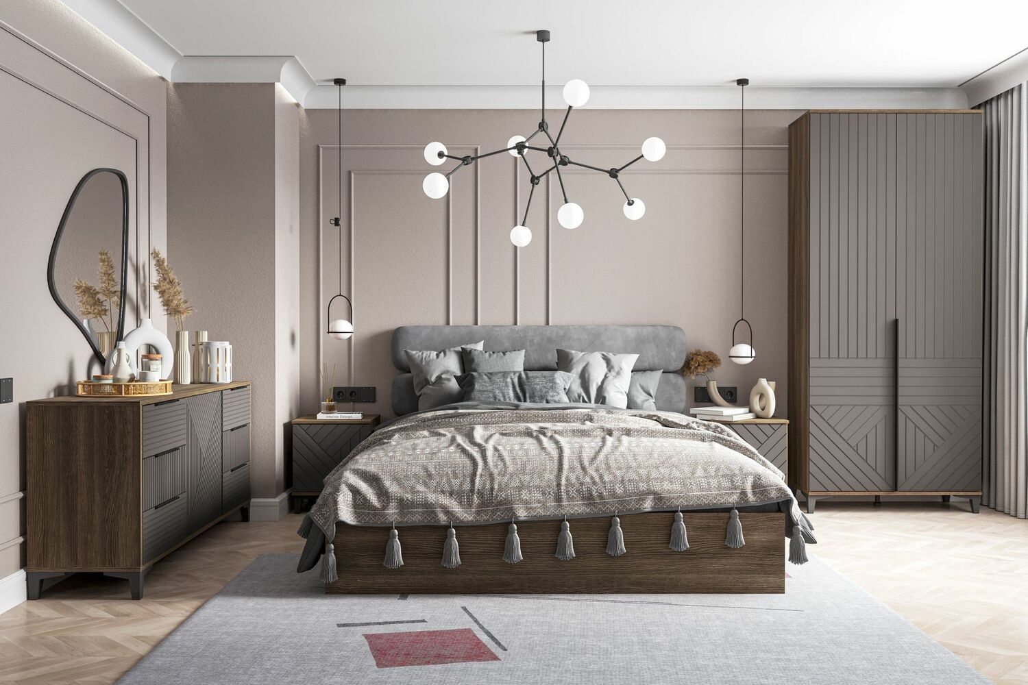 Спальный гарнитур Палау - это прекрасное решение для комнаты в современном стиле "лофт"" или "модерн". Сдержанный дизайн позволит воплотить любую задумку в интерьере.